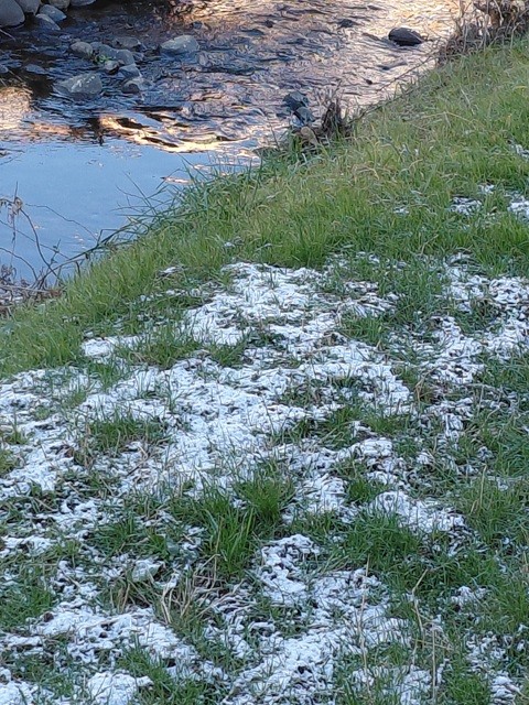 夕べの雪が残った鯉吉川 午後2時過ぎに撮影でこんな感じ 今日は寒かったってことだな