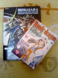 下敷きになっている大判本は、「Dandydragon」だけじゃ送料かかっちゃうな〜・・・と、ついででポチっとしちゃった戦国BASARAのオフィシャルコンプリートワークス、つまりは設定資料本です。ぶっちゃけ、こっちの方がお値段張ってますが、一応熟慮の上での購入。(エ?)無双や他の戦国モノにも伊達は出てきますが、やっぱBASARAのデザインが一番好み。色っぽいんだもん。(笑)