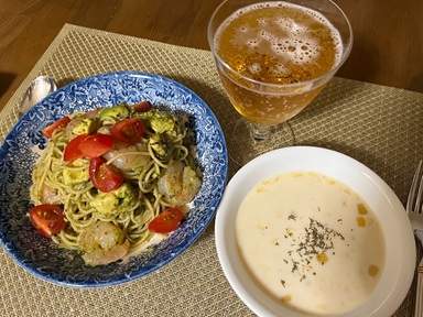 Åí¤ÎÈà»á¤Ïº£Ç¯ÅÙ¤«¤éɱϩ¤Ëž¶Ð¤Ë¤Ê¤Ã¤¿¤Î¤Ç¡¢ Åí¤Ï½µËö¡¢²È¤Ë¤¤¤ë¤³¤È¤¬Â¿¤¯¤Ê¤ê¤Þ¤·¤¿¡£ ¤È¤¤¤¦¤³¤È¤Ç¡¢Í¼¿©¤òºî¤Ã¤Æ¤¯¤ì¤Þ¤·¤¿¡£ ¥¸¥§¥Î¥Ù¡¼¥»¥½¡½¥¹¤Î¥Ñ¥¹¥¿¤Ë¤Ï¡¢ ¥¢¥Ü¥«¥É¡¢¥ß¥Ë¥È¥Þ¥È¡¢³¤Ï·¤¬»È¤ï¤ì¤Æ¤¤¤ë¤Î¤È¡¢ ¥¯¥ê¡¼¥à¥³¡¼¥ó¤ò»È¤Ã¤Æ¤Î¥¹¡¼¥×¡£ Íߤò¸À¤¨¤Ð¡¢¤³¤³¤ËÍÕʪ¤¬¤¢¤ë¤È¤¤¤¤¤Í¤È¥¢¥É¥Ð¥¤¥¹¡£ ¥Î¥ó¥¢¥ë¥Ó¡¼¥ë¤¬¤¢¤Ã¤¿¤Î¤Ç¡¢È¾Ê¬¤³¤·¤Þ¤·¤¿¡£ Æó¿Í¤Ç¿©¤Ù¤ëͼ¿©¡£ ÈþÌ£¤·¤«¤Ã¤¿¤·¡¢´ò¤·¤«¤Ã¤¿¡£ °ìǯ¸å¡¢Èà»á¤È¤ÎÀ¸³è¤¬»Ï¤Þ¤ëÁ°¤Ë¡¢ ÎÁÍý¤È¤«¾¯¤·¤º¤Ä´èÄ¥¤í¤¦¤È»×¤Ã¤Æ¤¤¤ë¤ß¤¿¤¤¤Ç¤¹¡£