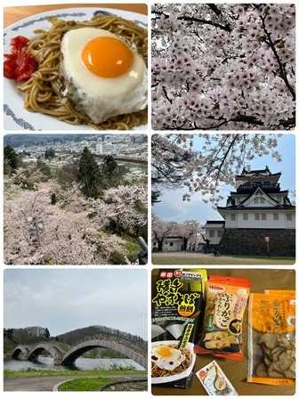 折角なので横手城に入り、展望台から見下ろしました。 桜がとても綺麗で気持ちが良かった。 次は近くにある平安の風わたる公園へ行き、 後三年合戦古戦場だったという橋を歩いて渡り、 すぐにまた戻ってきました。 橋好きとしては満足。