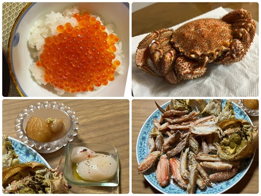 昨日から桜が泊まりに来ていました。 2泊して明日帰りますが、 あたしの誕生プレゼントにと母から海の幸をいただいていて、 3人で食べるよう言われていたので、計画的に来てもらいました。 日中は桜と桃でお洒落なカフェに行ったようですが、 夕方、早めに調理に取り掛かり、桃が毛蟹を解体してくれて、 桜が帆立をわさび醤油とカルパッチョの2種類に作ってくれました。 ちなみにイクラ丼は桜が好きじゃないので、 桃と二人、7月末に食べちゃいました。 たまたまご近所さんから新米もいただいたので、それも合わせて、 豪華で美味し過ぎる夕食と、3人で話が尽きない楽しさ。 桜と桃が仲良しなのも重なり、幸せの絶頂でした。