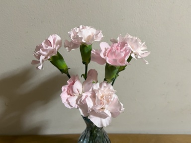 昨日買ったのは、ピンクのカーネーション。2本で440円でした。お正月気分も抜けてきて、今は桃へのお祝い気分。愛らしい、ベビーピンクが似合う雰囲気。