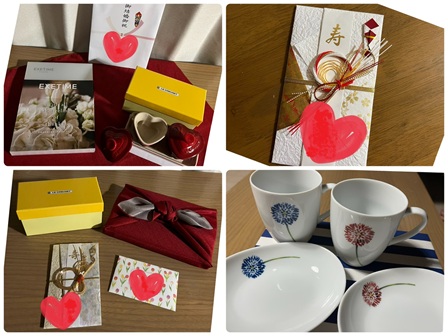 先日、桜が泊まりに来た時、 桃へ結婚祝を渡していました。 それは姉が妹に精一杯贈る、心のこもったもの。 御祝儀袋に現金とお手紙、 EXETIME SILVERというカタログギフト、 そしてLe Creusetのフタつきハート型ラムカン2個セット。 ずいぶん気張ってくれたものです。 手紙にはなんて書いてあったのでしょうね。
