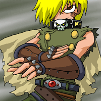 漠然と 核戦争後の荒んだ世界にふいに現れた救世主 みたいなイメージで描いたけどなんだこれは… 必殺技はナックルを使っての撲殺と、 ドクロの目から出るビーム(名前負け)