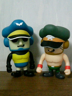 親子が揃った記念にパチリ でも親父の方はどうも足が失敗作っぽくて自立しません 壁にもたれてやっと立っております しかし腕真っ黒だなぁ…もともとこんな配色だったっけ? 可愛いので文句はありませんけども…ホントこのシリーズ可愛い