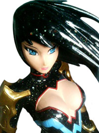 ザターナ…… なんだろう、ちょっと雰囲気が今までのと違う気がする… 目のせい?と思って箱の後ろを見たら、原型師が違うようです 顔が今までより立体的かも?光源によっては変な陰影が出来ちゃう感じ でもパッチリ釣り目が激しくかわいらしい! サンプル写真は太もも部分が素足でしたが、現物は網タイツはいてます フリーイングのバニーハルヒみたいにリアル網が使用されてます