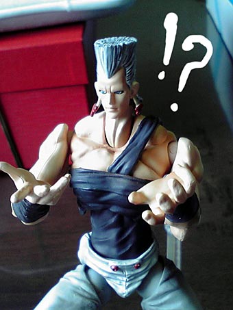 チャリオッツ下に置けばよかったと今思ったけどブラブラボー! かっこいいぜポルナレフーッ!! 携帯カメラでは顔のアップがいい感じに撮れなかったんですが、かなりいい顔しています