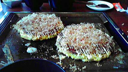 でまぁ、そんなプルプルする腕でお昼はお好み焼きを食べましたです 実は本格的なお好み焼き食べたの初めてー! 今までは冷凍しか食べたことなかったのです やっぱり鉄板で焼いてすぐ食べるのはおいしいィーッ!!