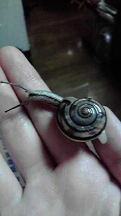 久々にこのタイプのかたつむりを発見できたので、思わず一枚パチリ ここ数年、小さくて角みたいな形の種類しか見なかったから嬉しいなぁ やっぱこう丸いのは可愛い 物凄くかわいい あの尖ったやつも可愛いっちゃあ可愛いんだけど、何故かこっちほど情が湧かない… 絵に描いたようなかたつむりがいいんだよ。うん。