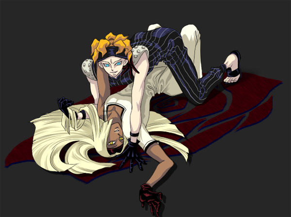 色はなんとなくイメージで塗りましたが、 調べるとスクアーロの髪を水色で塗ってらっしゃる方多いですね… つーかティッツァのポージングが文庫版35巻カラーのトリッシュとかぶっちゃってた… しかもこれちょうどクラッシュとトーキングヘッドの話が収録されてるとこじゃん! 何この微妙な記憶力……もうやだ