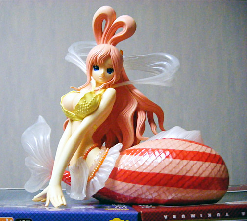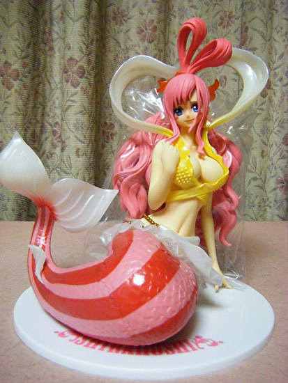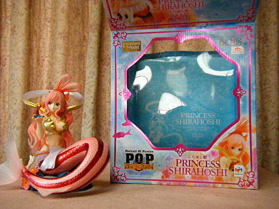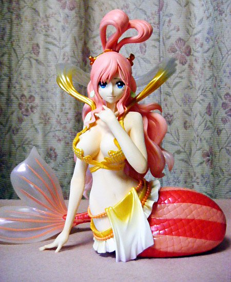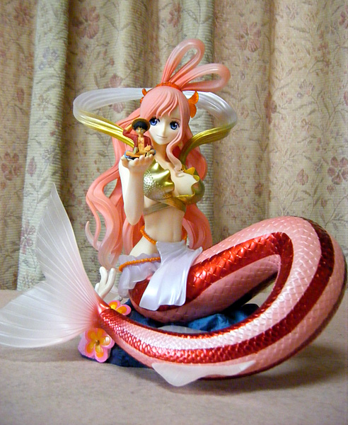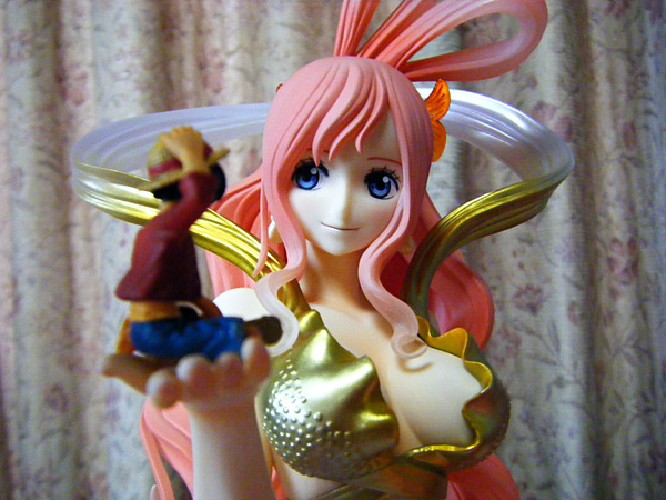 う〜んパーフェクト ブリスターから出して最初の印象は「でか!」より「重い…」でした しっぽの重量感凄いよこれ…ズッシリって感じ これで定価一万弱でしょ、材料費と出来の割に良心的だと思います ちっこいルフィもついてるしね! こいつがまた座りが悪く、すーぐポロポロ落ちます 飾る時にはテープで止めるか、いっそ飾るのやめるかした方がいいなぁ ところでこのしらほしちゃんの羽衣は、 ABSでもなさそうなのになんの支えもないけど大丈夫なのかね