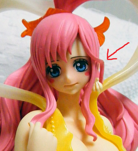 さて問題のメガネなんですけど、これほんと難しいです… なんでこんな厳しい作業を購入者にさせるんです… 幸い破損させずにすみましたが本当に差し込みにくいです なんとか差し込んだ後がまた大変で、位置を調整するのに苦労しました 模型用ピンセット使えってあるけど素人はそんなもんもってないよ… 仕方ないので爪楊枝で代用 更に、跡がつくから鼻筋につく直前で押し込めるのをやめろってことなんですけど、 そうすると今度は前髪がはまらないので結局押し付けちゃいました 更に更に前髪をはめた後、再度位置を調整…大汗かいた もうちょっといい感じの位置にしたかったけどもう無理です諦めた サンプル画像見るとちょっと低めにかけてあるけど、あんな絶妙な位置になんかいかない! 不器用な人はある程度のところで妥協した方がいいよ