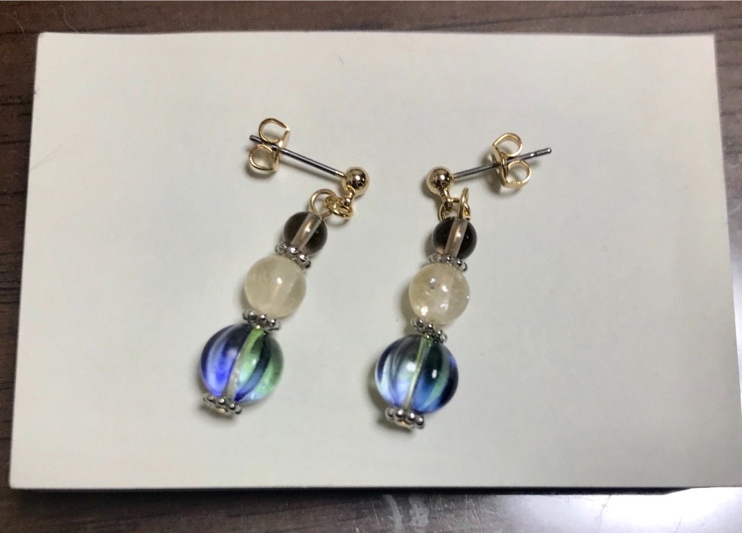 上からスモーキークォーツ、シトリン そして一番下が最近最高に可愛いと思ってる、 チェコのパンプキン! ブルーとグリーンがなんか青臭いなと思ったけど、 袋から出してこうすると案外キレイ…… このところTピン9ピンを上手く丸められるようになった 丸めたくて繋げてるフシある のに、ペンチ一個壊れた買わなきゃ