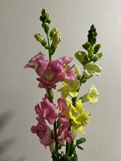 ところでスナップとすごく似ている花で、 ストックという花があります。 いつもどっちかなと迷ってしまいますが、 改めて違いを確認しました。 スナップは別名キンギョソウと呼ばれ、 金魚が口を開けいてるように咲いているのに対し、 ストックは八重でコロンとしていて、 スナップより花が密集しているものが多い。 こんなところでしょうか。 これからも迷うだろうし、 間違えて記してしまうかもしれません。 そのたびに確認しないと。