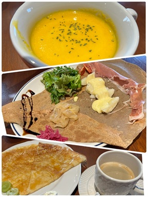 ポタージュ、ガレット、クレープ、コーヒーというコース。 どれも美味しくて大満足でした。 その後、2階でガレージセールしていたので見学。 蔵に入っていた年代物とかが並べてあり、 あたしは小皿を2枚購入。 レイちゃんは作家さんの器の他、セール品も買っていました。