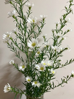 先週、購入したのはクジャクソウ。 2本で330円でした。 下から上まで、わっさわっさと咲いていたので、 下の方を切り、短めの束にして、 ダイニングキッチンに飾りました。 もう1週間も経ちますが元気に咲いています。 たまにはこういうボリューミーなのもいいですね。
