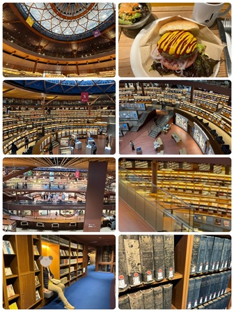 その後、タクシーで石川県立図書館へ。 ちょうどお昼時だったので、館内にあるカフェHUM&Goにて、 クラシックバーガーをサラダとコーヒー付きにしました。 ジュンちゃんは食べられないかもとテイクアウト仕様にしてもらいましたが、 結果は少しずつ、全部食べられました。 良かった、良かった。 食後、いざメインの図書館へ。 こちらは外観は四角ですが、館内は円筒形になっており、 年輪をイメージしたように本が収められています。 4階まで吹き抜けになっていて、 下から見ても上から見ても、芸術性あふれる造りになっています。 4階のフロアまで上がり、一周してから順々に下り、 2階の二人掛けの椅子でしばし読書をしました。 ジュンちゃんはちょっぴりうたた寝もできたようです。