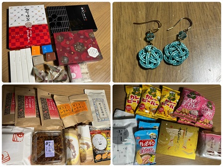 最終日に相当数のお土産を買いましたが、 初めての北陸だったので見るものが新鮮過ぎて、 あの人にもこの人にもと嵩張っていきました。 買うからには自分も食べてみたいと思いつつ、 数の関係上、配るのみになってしまったものもあり、 買い過ぎたと思っていた割には、もっと買っても良かった感じ。 思い切って宅急便を使ってでも大盤振る舞いで買えば良かったかな。 それでもバラマキお菓子などは一通り食べてみて、 白エビや棒茶味のものを多く選んでみたので、 どれもはずれの無い美味しさでした。 唯一、自分に残るものをと兼六園の売店でピアスを買いました。 九谷焼などいろいろ有名な工芸品も多くありますが、 水引きに関する物も多く、ピアスを選びました。 とても可愛いぃ、お気に入りになりました。