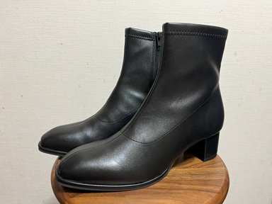 そこで前から欲しかった黒いブーツに出合ってしまいました。 今持っているのは長靴タイプと、 イノマタさんにいただいたロングブーツと、 近所のおば様からいただいたショートブーツの3足。 どれもスーツには合いそうもないものばかりなので、 シックなものが欲しかったのです。 たまたま良さそうだったので足を入れたところ、 すっごく履き心地が良かったので、思い切って買っちゃいました。 7,139円が30%OFFで4,998円になっていたのも魅力。 合皮なので濡れても心置きなく履けそうです。 あまり靴を持たないくせにブーツは4足になっちゃいましたが、 2足はいただいたものですからね。