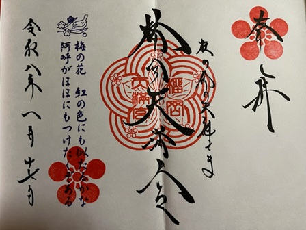 今日のお詣りは最後の神社なので、 おみくじを引きました。 中吉でした。 大日如来での初詣の時は、珍しい半吉でしたから、 少しだけ上向いたということになるのかな。 御朱印もいただきました。 初穂料は500円。