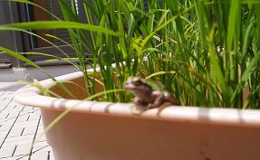 これもピンぼけだけど、ベランダ稲作にお越し下さったげこげこ。めっちゃ歓迎したのに一日でいなくなった。悲しい。