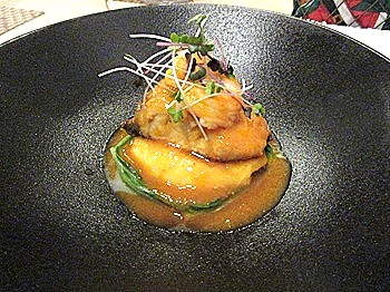 ◇ 🐟料理。 魚の下の白いのはおそらくメレンゲ... 魚と一緒に口に運べばふわとろ食感。 そしてソースが美味しい!
