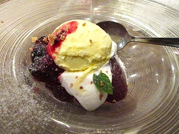 赤ワインで煮たリンゴのコンポート(だと思う)が一番下に... ボリュームある最後のデザートが、甘いものは別腹の女子には嬉しいですね〜✨