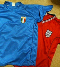とりあえず僕が持ってる唯一のサッカ−グッズ イタリアとイングランドのユニフォ−ム!
