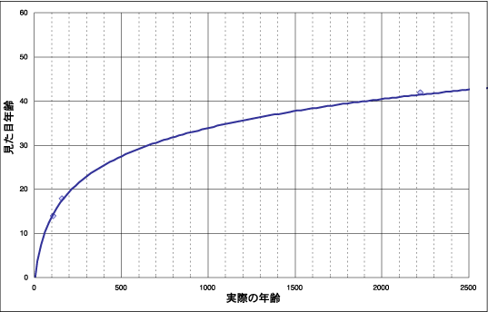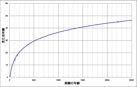 あのグラフには当然ながら問題は多々ありまして。ていうか問題だらけです。 それは後々、設定を申し上げるときにでも語りますが。 で、それを承知の上で無理矢理作っています。あれは大雑把に、がつっと鷲掴みに関係を掴むために作ったグラフなのです。 なので、これはおかしいよね、というところも「馬鹿だなあ」と一笑に付すってなことでお願いいたします。 でも、さすがに十九歳はきっついかなとは思っておりましたので。 十八歳にしてグラフを作ってみました(これで一応高校生の範囲内)。この方が都合のいいこともありますしね。 変わらないかしら。でも、グラフの形状としてはかなり変わります。