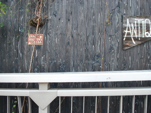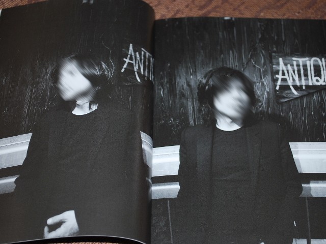 「ANTIQUE」 と書かれた木製の塀の前で撮影されています。 この場所で、この本の中の多くの写真が撮影されていて 表紙もその中から選ばれているようです。