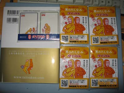 で、家に帰ってから戦利品をパシャリ。 左から、特典の付箋紙、無料&取り放題のティッシュ 励行カードを集めて本にした「男のたしなみ」です。 取り忘れたけれど、ポストカードも2枚買いました。  ティッシュは、2回に分けて取りました。 お客さんが引いたらもっと取る予定でした。チッ! 名古屋のタイツ展は『プチ』らしい。それでも人が切れるのを待つためにティッシュを握りながら30分ぐらいうろうろしたやつ...。一度、パクったあの絵が浮かんで、脳みそに鳥肌立ちました。
