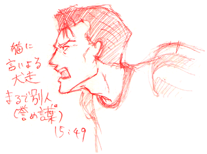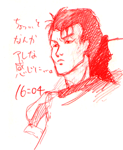 K96さんへ 不純な動機でもオーケーですよ(笑)、ブチョー!!インターネット書道はやり直しは効かないけれども、色を白にすれば消しゴムの代わりに使えるので、なかなかいけます。あの絵を描く前に、パズに和服ってええよなぁと1人にやけていたので、渋いと言っていただけて感無量であります。そして、サイトーの「あ〜れ〜」の先がとても楽しみです。ムフフ。