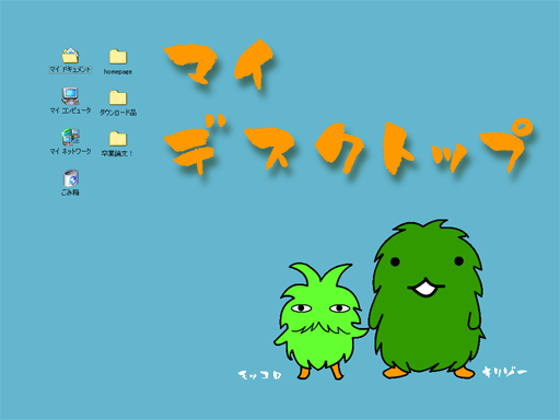 猫村さんが見つからなくて、やけになって携帯の壁紙作ってました。  モリゾーが無邪気に、キッコロは渋くなりました。 しげさん、ネタ提供ありがとうございます! 元ページは こちら。色や名前も変えれます。