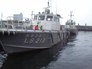 その船に乗って行った先で、偶然見つけたこの船。 見難いですが、船体には海上保安庁ってあります。どうやら 灯台見回り船のようす。  この船の後ろには、「よどぎく」と「てるぎく」が控えてました。 お魚にあいに来たのに、水族館入る前からこんなサービス。 得した気分です(笑)。ちなみに海上保安庁のお船の向こうには大阪府警のお船がたくさんいました。