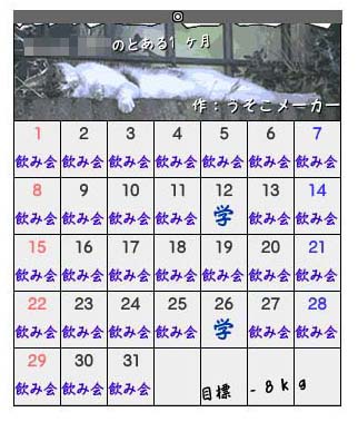 ¤½¤ó¤Ê»ä¤Î¥«¥ì¥ó¥À¡¼¡£ Ê¿Æü¡áÉⵤ(¾Ð)¡£ £±£³Æü¤Ï°ìÂβ¿¤òÊá¤Þ¤¨¤ë¤Î¤ä¤é¡£