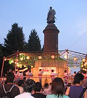 I 潮さまに(有難くも)納涼☆着飾られた大村益次を見ようじゃないかツアー@靖国神社、にお誘いいただいていたので、浅草から九段下に急行。納涼どころかごったがえす人波で余計に蒸し暑くなっている境内を抜け、夥しい灯篭と益次を囲んで盆踊り大会(マジ)と某女子大の新勧コンパ系盛り上がりの神輿担ぎを一通り堪能したら、さっさと酒を求めに繰り出しました(苦笑) ただ、葛生さんにしては歩き回った後、ついでに昨夜は届いたばかりの尾崎行雄著『近代怪傑録』の内容のあまりのおかしさに時間を忘れて読み耽ってしまったため、酷い寝不足でして。 いつもより量もペースもセーブしたのに、ありえないほど酔っ払った…。 正直に白状しますと、戸外で呑んで、帰宅するのに足元を気にしなければならなかったのは生まれて初めての体験でございました。(葛生さん家は母君が酒大嫌いなので、いつも理性を総動員して帰宅までには酔いが醒めるようなペースでしか呑まないようにしてるんですね。よって、自宅や泊まりの時に比べて、店で呑んだ時は酔い難いはず、なんです、よ…。←ちと自分の理性に自信をなくしつつあるらしい) I 潮さんにも心配かけてしまいました御免なさい。懲りずにまたかどわかしてやってくださると嬉しいデス♪<私信>(も一度あの店リベンジかましに行きません??)</私信>