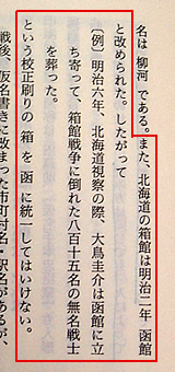 問題の箇所はココでございます。 最初は私も、人物名だけに釘付けになっちゃって、「ぎゃー!何コレどーゆーこと!? 人がせっかく勉強に集中しようとしておるとゆーのに!」と、切ない悲鳴をあげたものです、んが。 拙宅のお客様は、この部分を読んですぐ「…うぬ?」とお気づきになられることと思います。 うん、テキストの指摘は間違ってない。 確かに「箱館戦争」で「函館」で間違ってない。 でもさあ。 本文の内容がメチャクチャじゃねーか…!(夕陽に向かって絶叫)