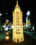 ←浅草はライトアップも独特。 なんと浅草十二階の立体ミニチュアです。