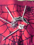 画像は私のくせのつかない前髪の必需品、ヘアピン。 王冠のはお仕事の時につけてます。 蜘蛛さんが一番のお気に入りvv そして、この間調達してきた黒い羽vv どれもプトマヨさんにて購入。 可愛いのですvv
