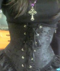 ボーナスで自分への半年分のご褒美に、ワンピースとコルセットを購入♪ ミルフルール様のスクエアレースワンピースと、ミルノアール様のアンダーバストコルセット。 ワンピースは裾がフリル、そして襟ぐりと袖、肘部分にレースの施された上品で可愛らしい膝丈のもので、お色は黒vv コルセットは薔薇柄で、編み上げタイプのもの…案外、ウエストニッパーより苦しくない?? きゅっとお腹が引き締まって良いですわ〜。
