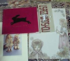 グラマラスエリア様でGETしたお品達vv 七戸優様のお手製ウサギ腕章、ツバキ様(念の為、うちのサイトに書き込んでくださる椿様では御座いません)のカラーイラストの便箋、お人形のポストカードvv 腕章はナンバーが付いているのですが、誕生日と同じ26番を選んで購入vv うふふ…可愛いですvv