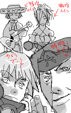 と思って止まないマリアッチの兄ちゃん(あんちゃんという呼び方がたまらんぜ坊ちゃま!)がやっと仲間になりました、夏。 「アディオーッス!!」にエライウケました。メキシコってそうかスペイン語圏か。あんちゃんの服はアレか、マタドールだな。(今頃、、、!!) ソンブレロ被ってんのに何でポンチョじゃないのかとずっと疑問だった。 つかソンブレロって普通に「帽子」って意味だったようなグラッスィアス。