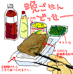 あ、このネタって、関西ローカルか?(笑) やー、久々に旨い肉食いました。バター一欠片で全然違うね!やっぱり。 買っておいて良かったー。 というかこの単価の差が激しすぎる食生活を何とかしろ(週一だし良いやんかー)豪華なんだか貧相なんだか(笑) 135円は粒コーン缶、99円/gは隠元のお浸しですよ!(誰も聞いてない)