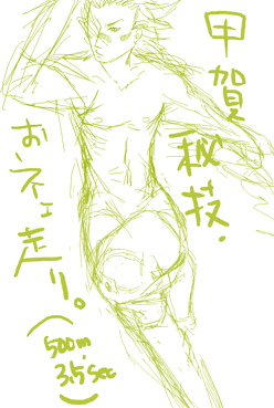 うざったいほど描きかけの絵が有るのでごっそり捨ててる最中(仕上げろよどれか一つでも!!)出てきた「生爪」という名前。「うわぁまともにファイル名があるなんだっけコレ」と、、、あ、わたしファイル名付けないのが基本(になりました。昔はそうでもなかったはず)「ikhjkj」とか、凄く適当に打ちます。なんでって、たとえば「さすけ」と打たれたファイルに政宗が下書きされてるとかが当たり前だからです。それがいつの間にか慶次になってたりとか。凌統になってたりとか。ホンット意味ねぇなぁ!みたいな、、、首傾げながら開けたら出てきた。