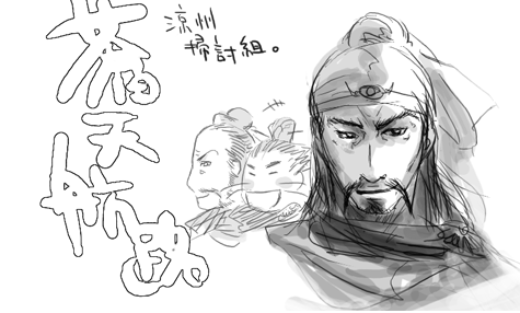初描き、錦馬超。ば、バランス悪いなι(明日描き直そう、、、)良く研ぎ澄まされた刃ほど、折れる、を体現してる人。 蒼天は嫌いな人が居ない。困る(笑) バサラは良いんだよ私如きがどーこー言わなくッたってとっくに大人気だから、、、みんな絶対観るでしょ。蒼天もう三年前くらいに連載終わってるんだよ、、、何で今頃感は凄い在るんだよ。 三国志フェアで、帯が全部レッドクリフの宣伝になってるのはまぁ判るとして、何故にアニメ化!? BS漫画夜話でもやったらしいですけど、、、(うしとらの回でブチ切れた過去があるので見ませんでしたともええ!まだやってたとは驚きだよあのクs以下割愛!!)