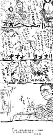 かこさ!!>うわぁぁぁやっぱりやるよね皆!(洗濯の件/笑)てか松永と信長話に反応有りがとぉぉぉぉ嬉しいまじうれしい!!凄いドキドキしてたので!かこさに反応もらえたらもう、血塗れもこわくないこれで!!ガンガン描く!!(ほどほどにな、、、) 蒼天絵茶も、年明けたら、、、!!てか蒼天サイト様どんどんリンク貼らせて貰おうそうしよう(無断も出来ない チ キ ン だ よ !) ふんどしたのしみだよ!無理せず頑張ってね!ウヘウヘ。てかもずくとかレバーとか、、、かこさ健康的よね。食生活が。素晴らしい。