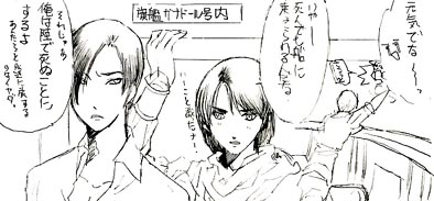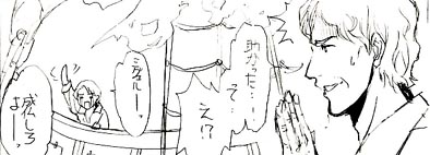 出張終了〜 - 2006年06月28日(水) ![]() と言いつつも、金土で再び出張ですが(−−; まあ今度は涼しそうなので体力的には温存できるかと思います。 つかなんか疲れが抜けないっつーか? 気温高めは体力的にきますね。 web拍手返信 ケルカナ様 おもしろいバトン有難う御座いますVv 好き勝手な自分的状況を書いているだけだったので 結構埋めるのは楽だったですよ^^ 自分にしか分からないと好き勝手書けるし(笑)←おい 創作語りも好きだし、なんかまだまだ書けそうです(え) ジョカのへたれ伝説(笑) 私の中だと、可哀相すぎるヤツです(^^; でもなんか根っこはしっかりさんなんですよ。 最後は…ぽしゃるけど。。。サルヴァドルのせいで。。。 しかし自分が海賊として立派な提督になれるかどうかは微妙ですよね^^; 剣の腕が一番心配です。一騎打ち! まあサルバドル艦隊のうだつ上がらない水夫の一人でもいいかなぁとは思います。 そして色々助けて貰ったりなんなりして。そんな妄想ばっかりです。 - 酷い客にぶちあたった - 2006年06月24日(土) 読んだら気分悪くなりますよ〜 こんな悪質な客は、私も初めてですが。 今手元にデスノートがあるならば、あのばばぁの名前を書いて 思いっきり苦しむ抜いて死ぬ方法を書き込みたいと思う。 品物にいちゃもんつけて、物をたかるババァ。 最後まで笑顔でお帰り願った自分に、本当に反吐が出るね。 でも途中笑顔で携帯電話ぶち壊しましたけどね。 分解しましたが、まだ使えるようです。 いつかね、壊すとは思ってましたよ? まあへし折ってたら終わってましたけどね。 今度はへし折れるかな。 会議●関係では、何度へし折って壊そうと思ったか知れませんからね。 嫌なことは忘れましょう! 王様の耳はロバ〜!! でも本当に私の携帯電話、いつまで無事でいられるかしら(--; - トリップバトン - 2006年06月23日(金) ケルカナさまから回って参りました! 取り敢えず大航海時代から…かな^^; ◇目を覚ますと其処は? アルジェ海賊のアジトだった!←しかないと思う。私的に。 ◇貴方は不思議な力が備わっていました。 とりあえず姿の消える力。(でも一部の海賊は気配で感じるので危険)←嘘 ◇どう見ても不法人物な貴方は、 その世界の最高責任者と面会することになりました。 ヒゲの王。ヒゲの中のヒゲ。赤ヒゲ・ハイレディン・レイスが目の前に! 取り敢えず彼の部屋とか趣味とか服装とか小物とかばっちりチェック。 海賊4人衆とかに囲まれて、ちょっぴり怖いがトレボールの姿に内心 ぷぷっと笑ってみる。 ◇なんとか受け入れてもらえましたが宿がありません。誰の家に泊まる? トーゴ・グリマーニ! なんか変な感じにおもてなししてくれそう。 私的設定でトーゴはジョカの保護者みたいな感じなので、ジョカもいたりして。 そしてトーゴに無理矢理変な踊りをさせられているジョカを トーゴと一緒に笑ってみる。←鬼畜道 ◇貴方がこの世界で必ずやりたいことは? うーん…大砲をぶっ放す? いやいや夢はでっかく自分で海賊艦隊作ってみる! ◇貴方は元の世界に戻れることになりました。 あ〜…交易と海賊行為で稼いだ金とのお別れは辛いわ〜 と思いつつ、まあいい経験したなと最後は4分の一金で豪遊。 4分の2は副長と部下に分けて艦隊の引き継ぎを行ってみる。 もう4分の一は…世話になったどこかの親父にでも。 造船屋の親父とか。いい大砲と船造れよ!みたいな? 酒場女(アンナ)でもいいけどね〜 ◇お帰りなさい。次は誰をトリップさせますか? うーん…ここ誰が見てくれてるかよく分かっていないので アンカー…かなぁ^^; 創作トリップバトン〜 世界というか街がたくさんあるので迷いますな〜 ◇目を覚ますと其処は? ティトン…でいいかな。 ザクスン帝国に大戦中吸収されたティトン公国(元ティトン王国)首都。 ザクスン最南端の港町で、元王がそのまま公爵として治めてる。 海神イーリスを祀り、その子孫が王族と言われている。 20年後くらいに無血で再びザクスンから独立して、王権復帰するです。 海軍が有名。浅めの港が多いため、小型で喫水が浅く船足の速い船が 多いことが特徴。軍事港はティトンとリャナス領の他にもちょこちょこ。 …書いてると、きりないなぁ(--; ◇貴方は不思議な力が備わっていました。 海の中でも呼吸が出来る!←意味ねぇ〜(笑 ◇どう見ても不法人物な貴方は、 その世界の最高責任者と面会することになりました。 うーん…世界の責任者は分からないので、ティトン公爵にでも^^; 港街だけに外国人受け入れに抵抗のない人も多く、すんなり会議で 釈放議決。別世界から…という人も裏世界ではたまに居るので、 そちらに引き取りを掛け合うかも知れないけど、本人に決定権有りかも。 ◇なんとか受け入れてもらえましたが宿がありません。誰の家に泊まる? リャナス男爵ヴェンセスラウ=アルムデナ(元王弟)の別邸とか。。。 庭が崖っきわで、眺めが怖綺麗。 別邸だから男爵夫人も騎士見習いに来ている中央貴族ジェッシュ家長男 エイドラゴ