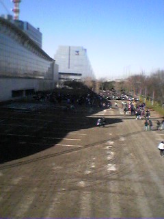 並んで待っていた場所です。右のずっと奥の日なたのところにたくさん並んでいるのはグッツの列、建物側の日陰に並んでいるのはホール(ライブの)列。私達はその日陰で何時間も立ってましたよ(T_T)。。