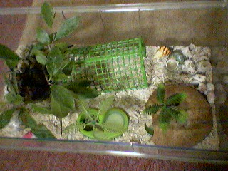 家に帰って、早速ヤドカリの家の模様替え、、寝ていたみんなを外に出し、下に敷くサンゴ砂を入れ替え、ガジュマルの木、ヤドカリ用ジャングルジムなど置ききれないほど入れたよ。ガジュマルの木は入りきらないので斜め横向きで無理やり入れた。外に出したヤドカリ達は部屋中を走り回り、いい運動をしてました。 模様替えを終えた家に入れると、最初は急に場所をとった木に迷惑そうだったけど、時間をおいてからそっと見てみると、木に登って、木の皮や葉を食べだした。かわいい〜〜。。