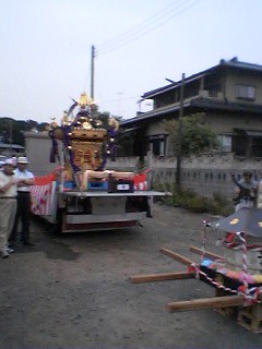 年々子供の数が少なくなって奥の立派なお神輿を担ぐ人はいなく(ただ飾って置いてあるだけ)、手前の小さな神輿で町内を子供達が"わっしょい、わっしょい"言ってかついで歩いていました。